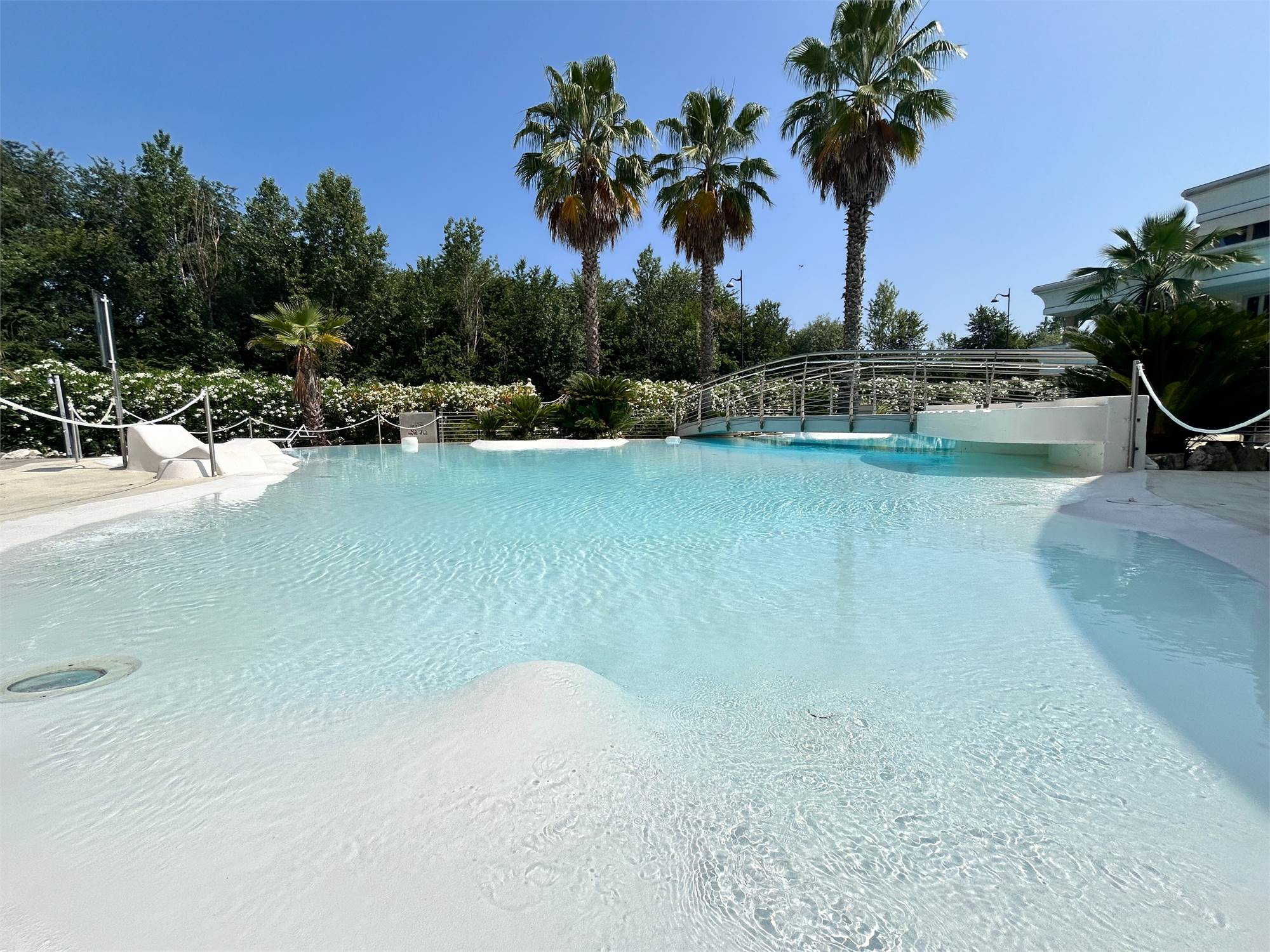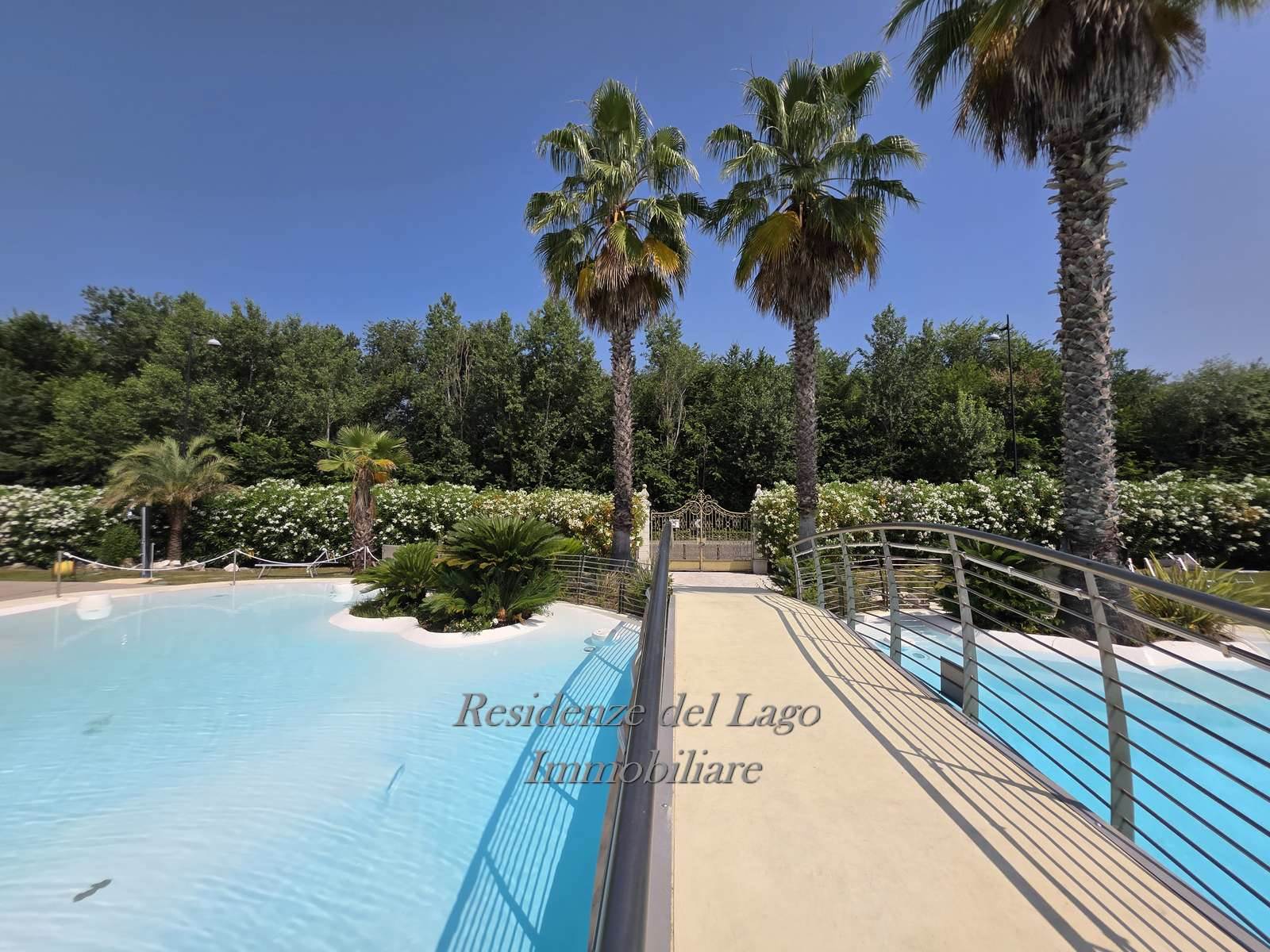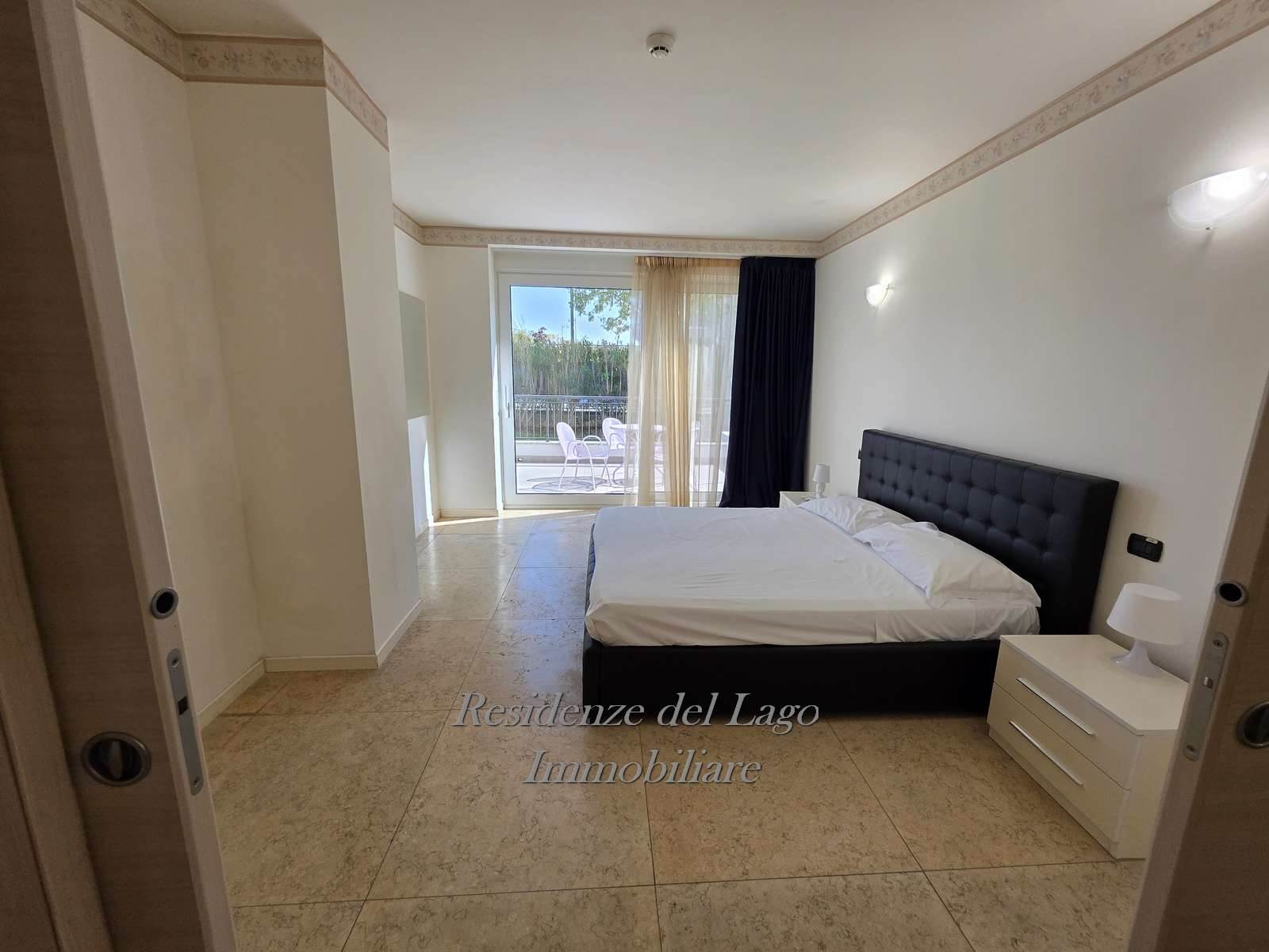 AL CONFINE TRA DESENZANO D/G E SIRMIONE Proponiamo in esclusivo residence con scenografica piscina ampio grande ed elegante appartamento bilocale al piano terra con terrazzo di oltre 30 mq accessibile dalla zona giorno e notte .