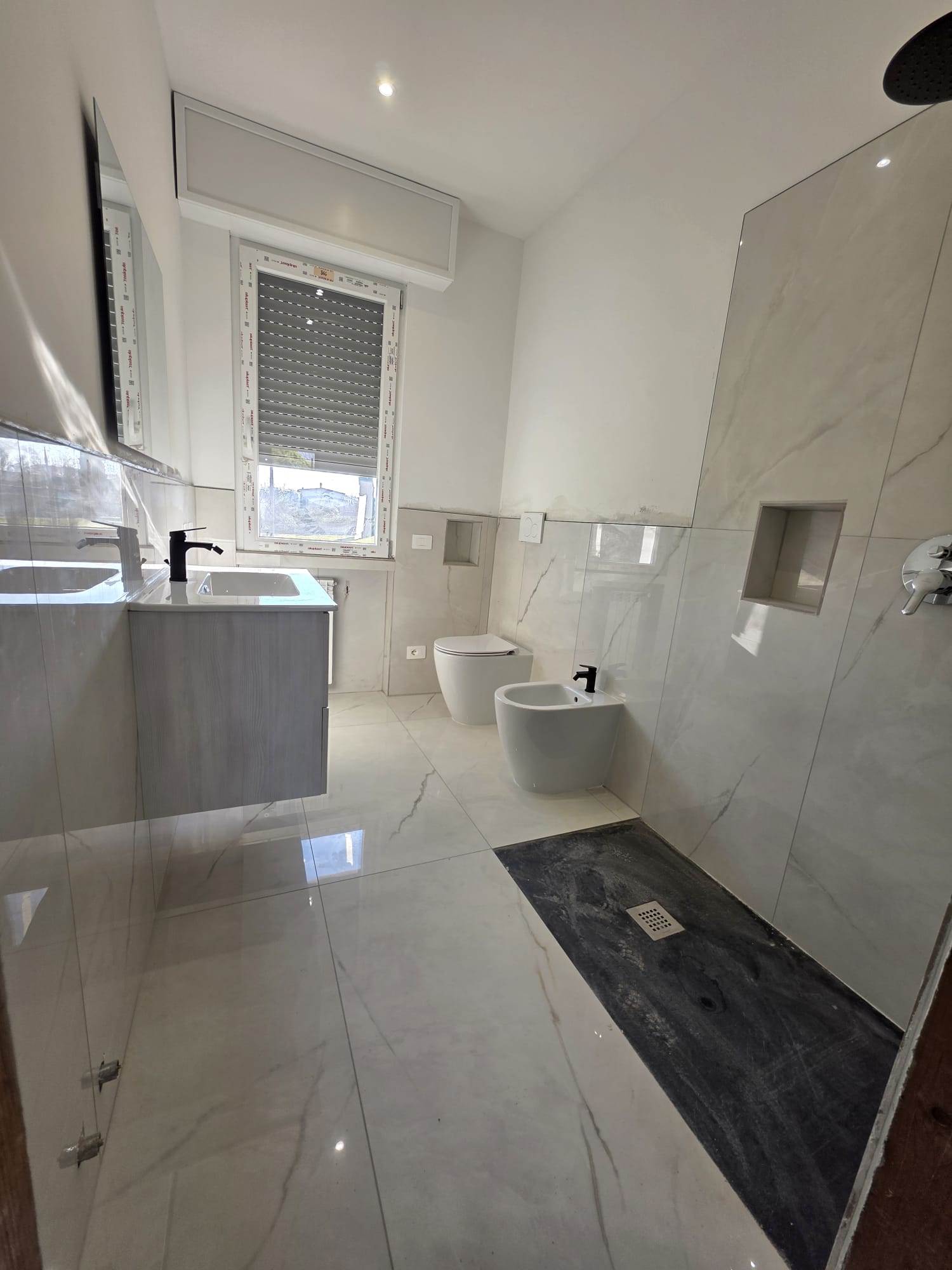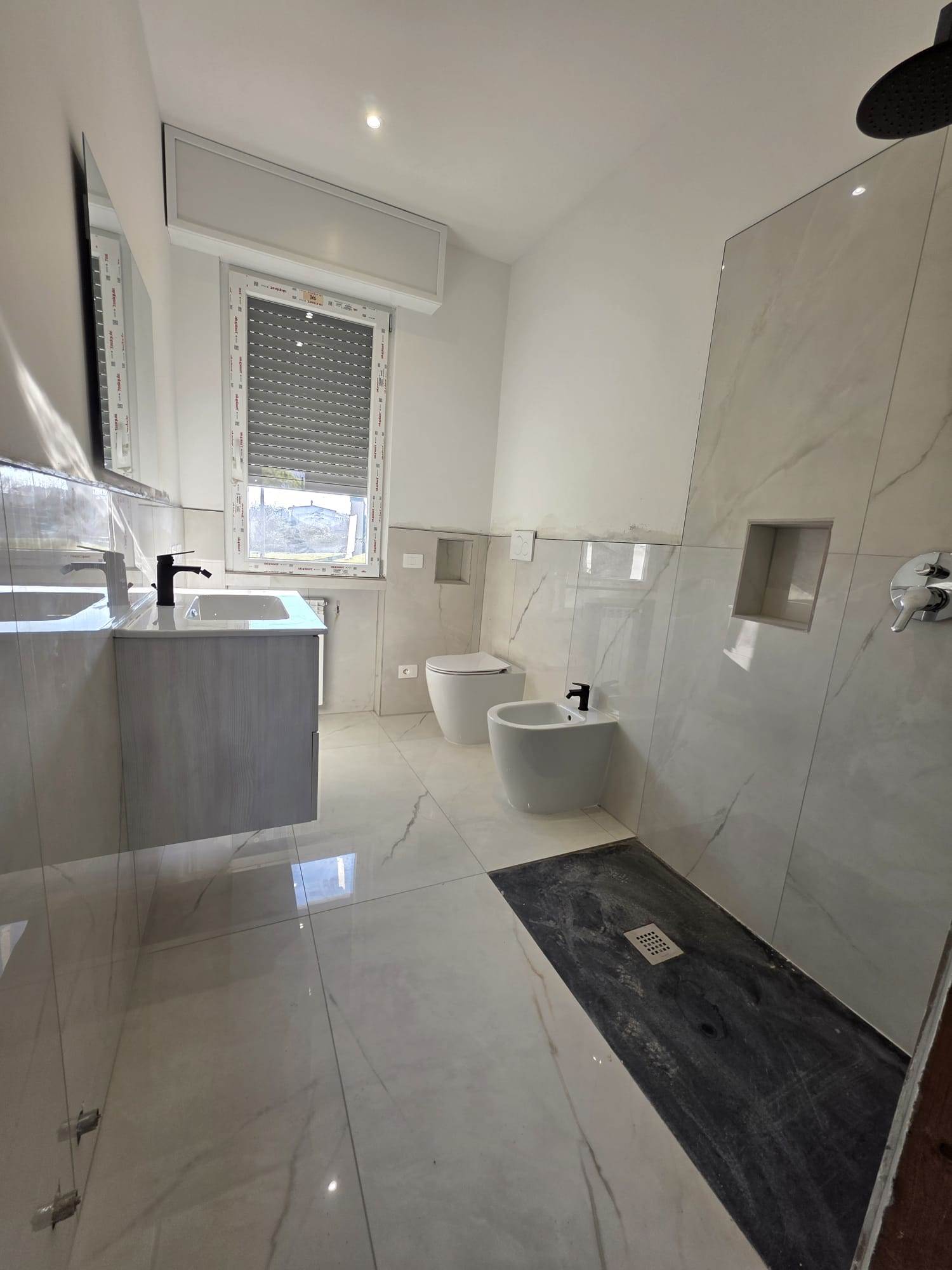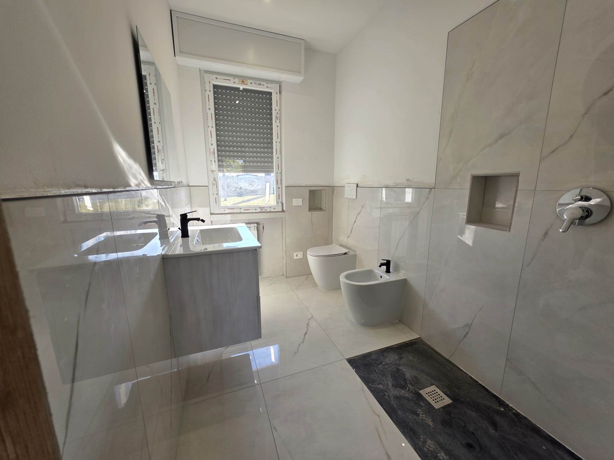 Piano Primo (Zona Living): Il cuore della casa è un luminoso soggiorno living con cucina abitabile a vista. Una grande vetrata scorrevole crea un continuum con la spaziosa terrazza, ideale per pranzi e cene all’aperto. La zona notte comprende due ampie camere matrimoniali e un bagno finestrato con doccia.