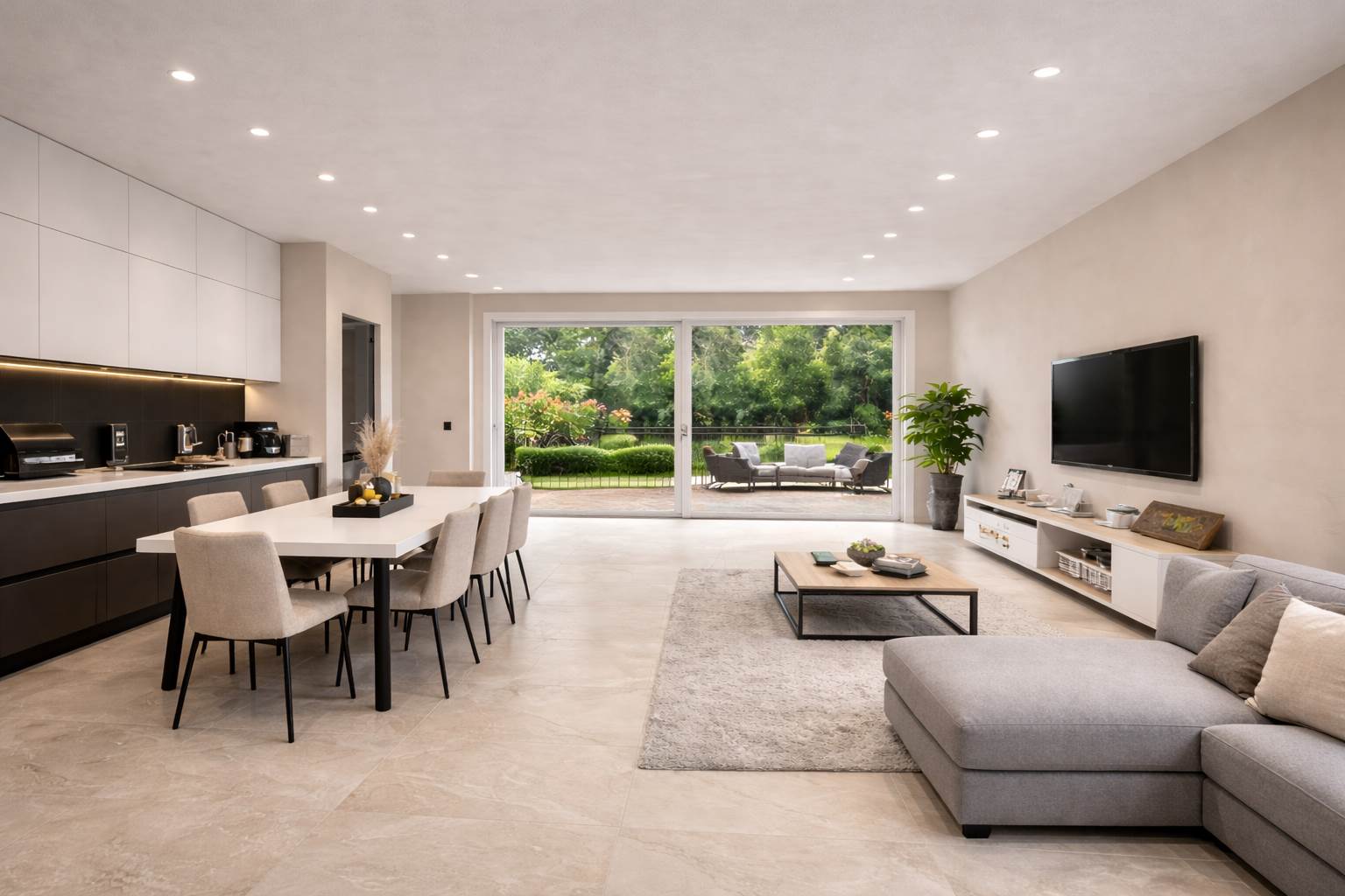 Un vialetto privato conduce all’ingresso, dove si apre una luminosa zona giorno con cucina a vista abitabile con ampia vetrata e accesso diretto al porticato coperto e al giardino, perfetti per vivere gli spazi esterni in totale relax.