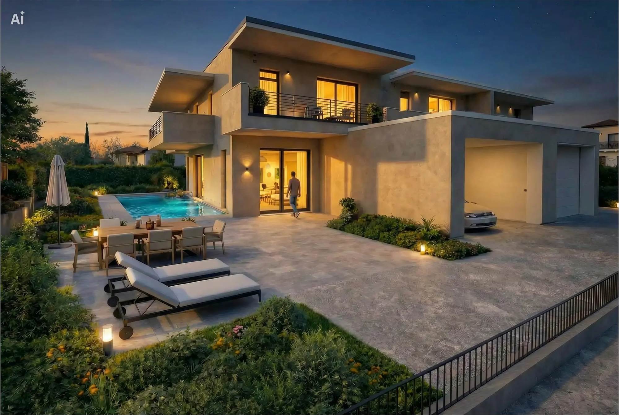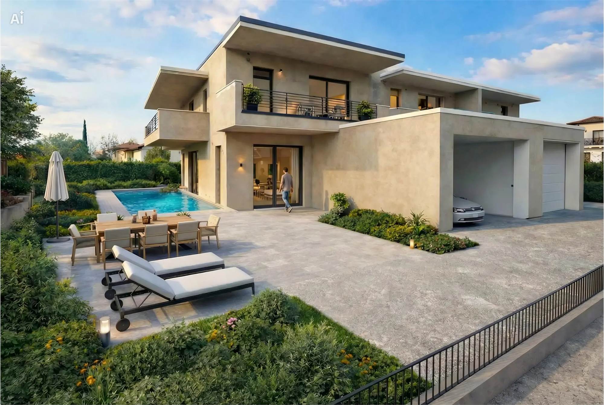 Il progetto, già in stato avanzato e con consegna prevista per la primavera 2026, comprende quattro ville con ingresso indipendente, ognuna con ampio garage e posto auto privato:
