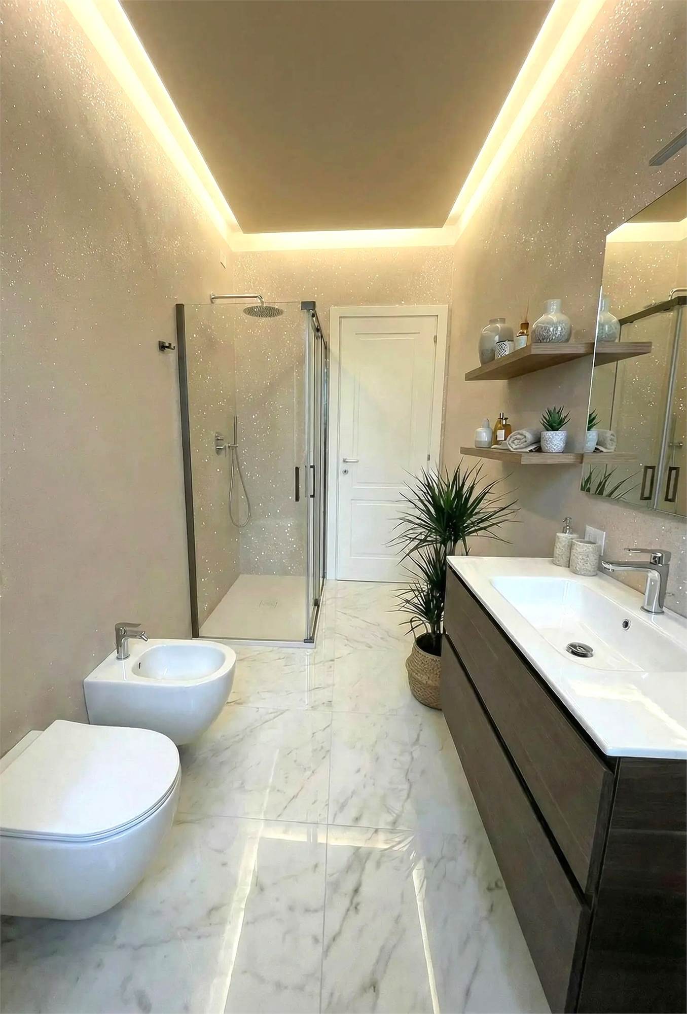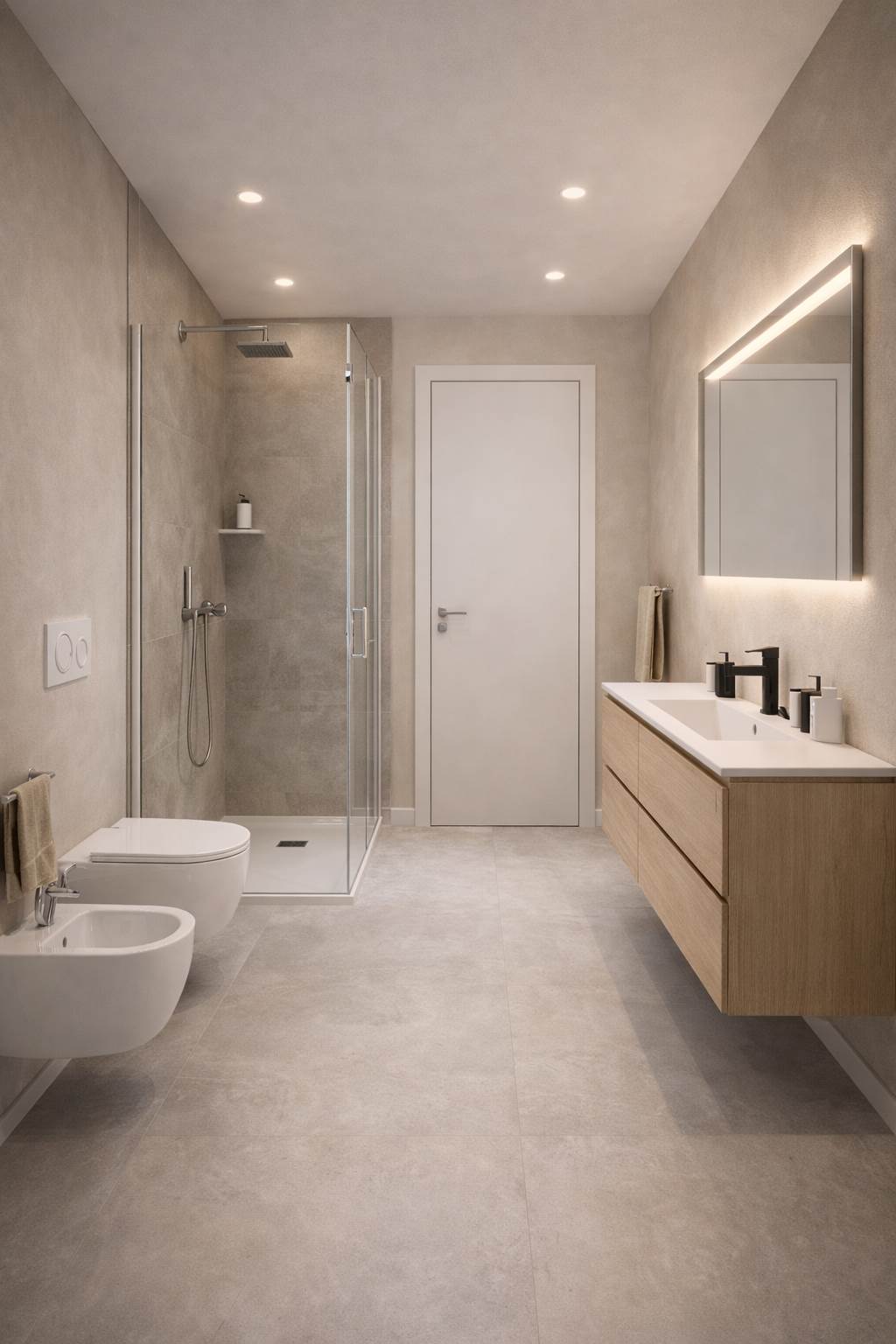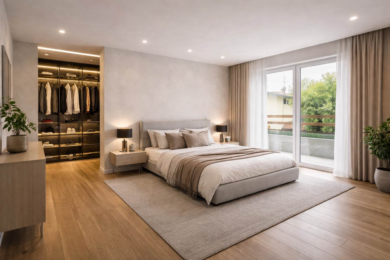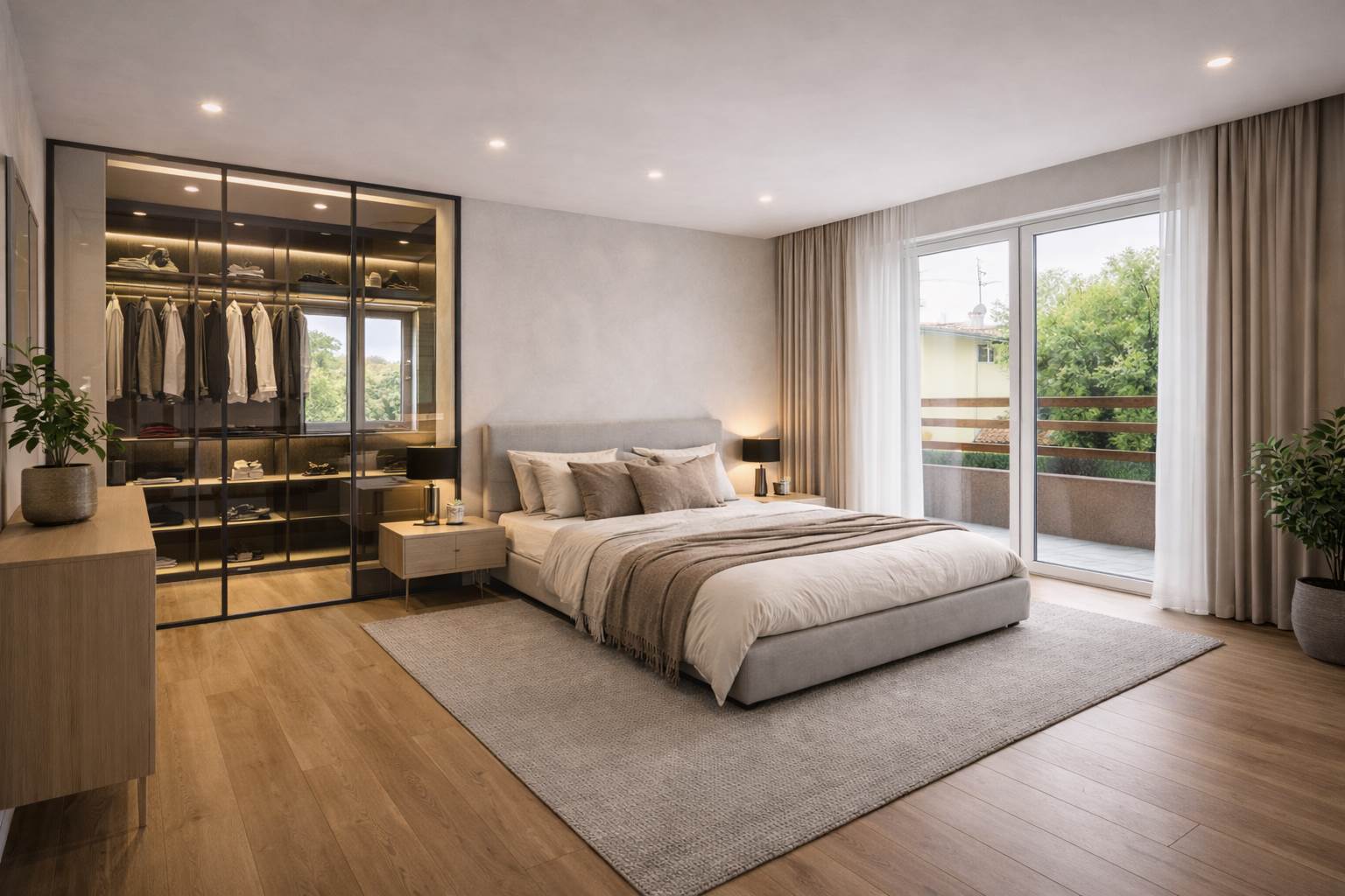 Al piano superiore, una elegante scala con parapetto in vetro conduce alla zona notte composta da una camera matrimoniale con cabina armadio, una seconda camera doppia, un ampio bagno finestrato con doccia, e la possibilità di ricavare una terza cameretta o studio, secondo le esigenze dell’acquirente.